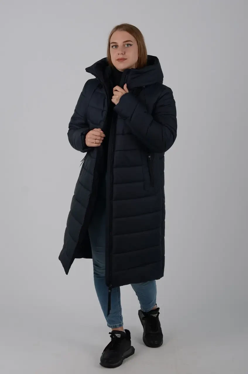 Жіночий брендовий пуховик високої якості з оригінальним напівприталеним кроєм, прикрашеним якісною фурнітурою.